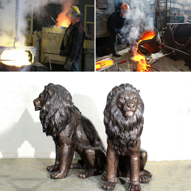 Outdoor popular animal art of antique modern bronze lion sculptures ... carved foo dog statues ... with ball at entrance. Brand new antique sad Hand carved ...